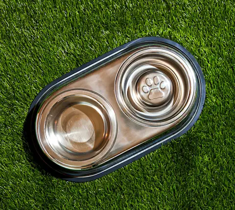 I loved the idea of adorable ceramic dog bowls or a mid-century wooden feeding stand, but after a few years I’ve come to the realization that easy-to-clean is the name of the game. A stainless steel feeder that includes a water and slow-feeder bowl that will keep puppies from scarfing down their kibble too quickly.