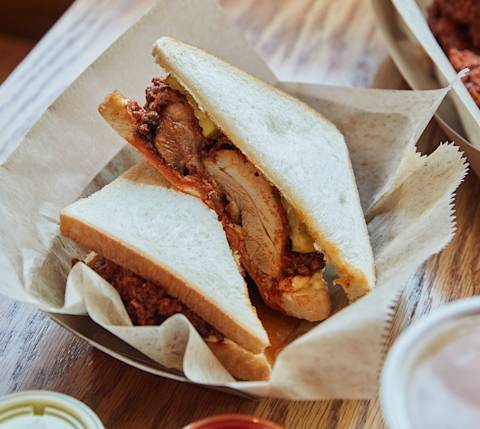 The meal comes with two sides. “What makes fried chicken great is complementing it with really awesome sides,” Huang says. “You’re kind of having a picnic.”