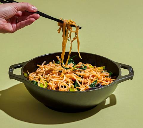 Para añadir espinacas frescas a tus salteados, empieza por asegurarte de que estén lo más secas posible para evitar que queden blandas. Puedes hacerlo centrifugando las espinacas lavadas en una centrifugadora de ensaladas o presionándolas entre paños de cocina. Cuando las espinacas estén secas, corta o rompe las hojas en trozos pequeños. En cuanto el salteado esté listo, agrega las espinacas a la sartén o wok de una vez. Remueve hasta que empiecen a marchitarse, entre 1 y 2 minutos. Retira del fuego y sirve inmediatamente.