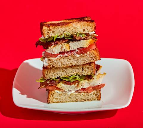 Il est parfois agréable d’avoir un peu plus de viande dans un BLT, en particulier lorsque les tomates ne sont pas à leur apogée. Si votre poulet est resté au réfrigérateur pendant un jour ou deux, retirez la poitrine et laissez-la reposer à température ambiante pendant que vous préparez le reste des ingrédients de votre sandwich. Si vos sandwichs ont tendance à se défaire, ajoutez une tranche d’avocat pour maintenir le tout en place.